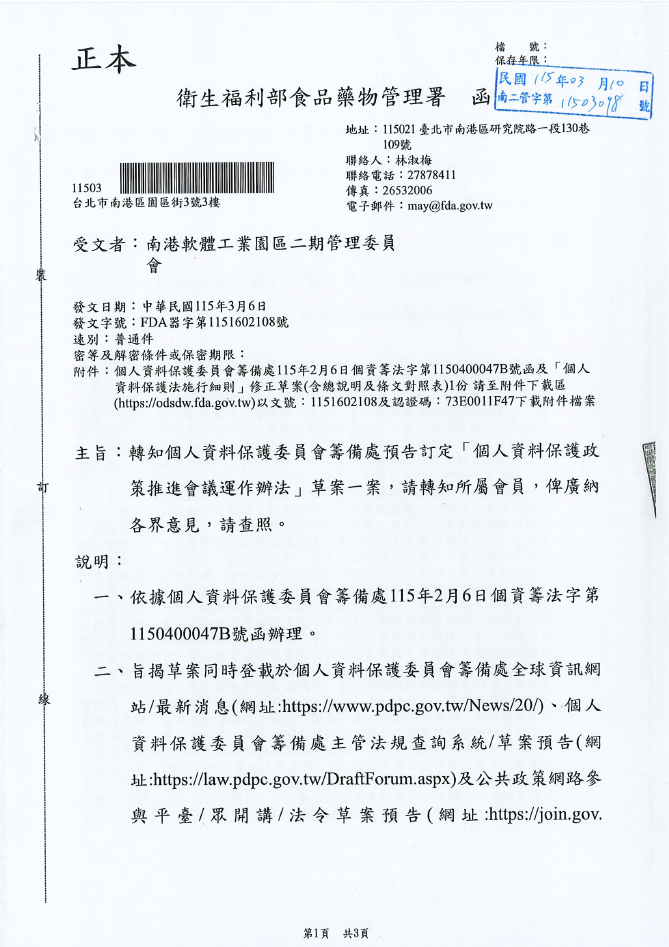 食藥署「個人資料保護政策推進會議運作辦法」草案.pdf